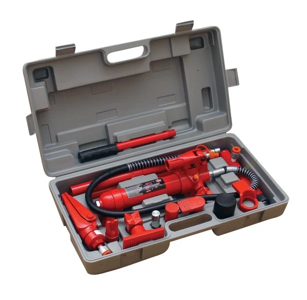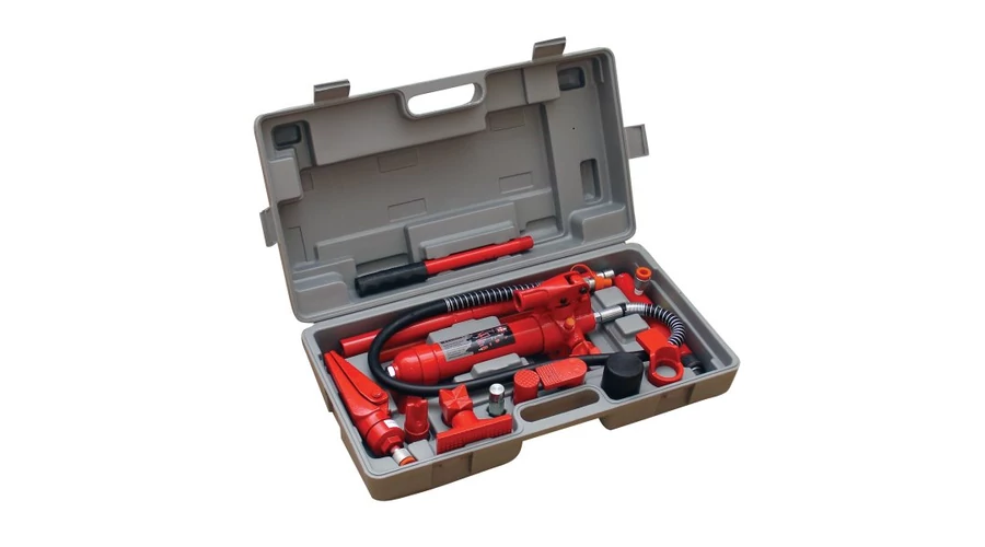 Hidraulikus berendezések járműkarosszériák javításához. Egy hidraulikus tágulási hengerből és 14 tartozékrészből áll. Széleskörű felhasználási köre személygépkocsi karosszériák, kisteherautók és teherautók javításában, különösen olyan helyeken, ahol nincs lehetőség energiaforrásra csatlakozni. A készülék használható függőleges és vízszintes irányú tágításra, összenyomásra, emelésre és nyújtásra. Könnyen szállítható műanyag tokban. Nyitási erő 4 t, bőséges tartozékok. Kiváló minőségű hidraulika hosszú élettartammal. Dugattyúlöket 125 mm.