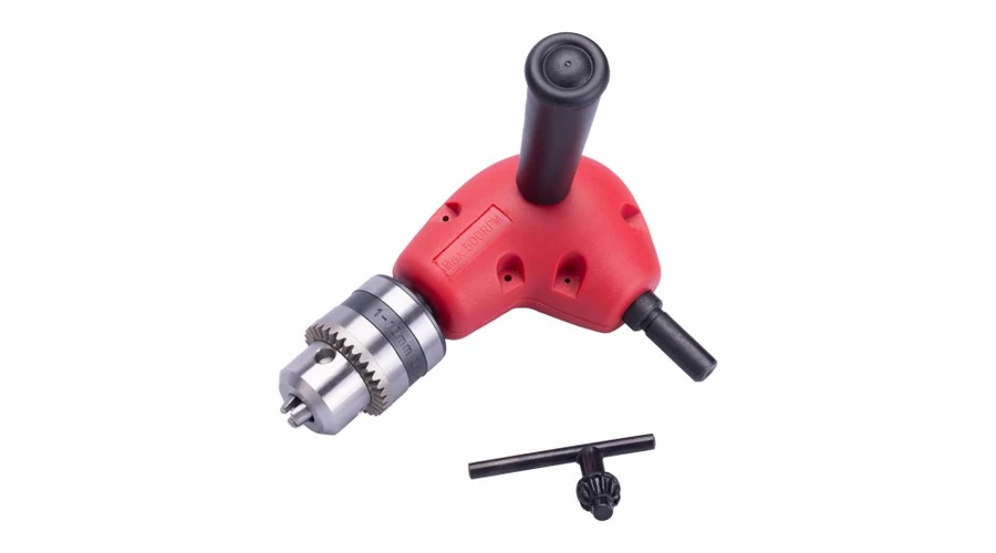 Fúrótartozék 90°-os szögben történő fúráshoz, átm. 1,5-10mm, szár 10mm, tokmányok max. ABS műanyag ház, fém fogaskerék. Áttétel 1:1.