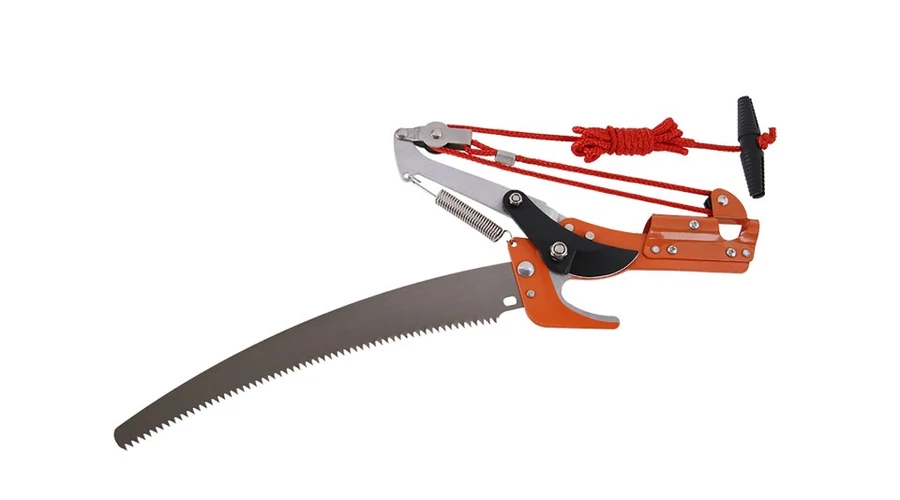 Hernyó, kerek penge tapadásmentes felületkezeléssel + fűrész 30 cm, felhasználása: fák koronájában lévő ágak vágásához, metszéséhez, a penge sebességfokozat-vezérlése megkönnyíti a megerőltetést vágáskor.