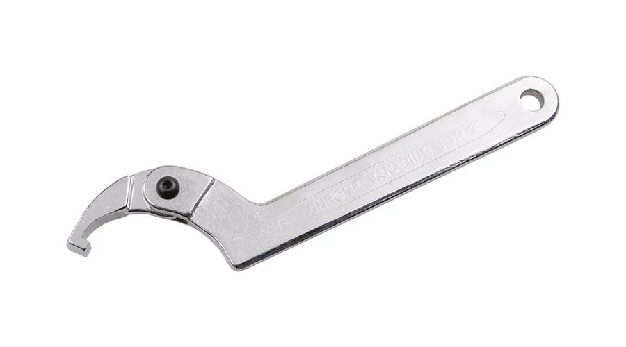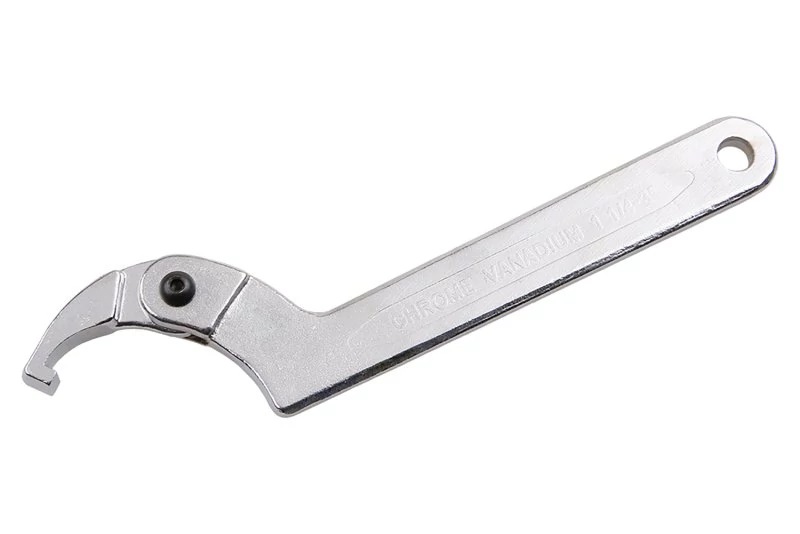 Állítható horogkulcs gallérokhoz, gyűrűkhöz és csapágyakhoz. Egypofa szorítócsappal ipari kivitelben. Használat közben győződjön meg arról, hogy a pofakampó megfelelően rögzítve van. Kivitel: matt króm felület, kovácsolt, króm-vanádium acél.