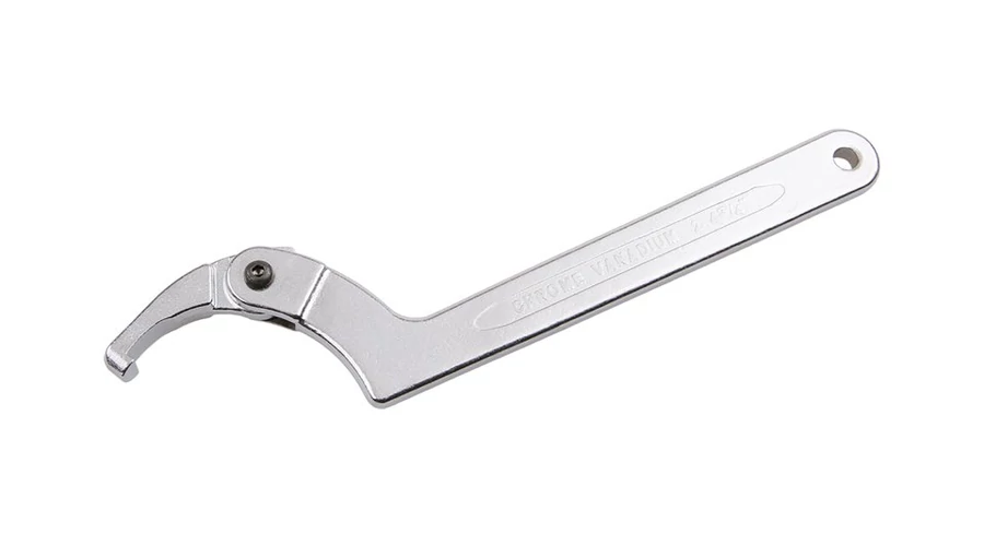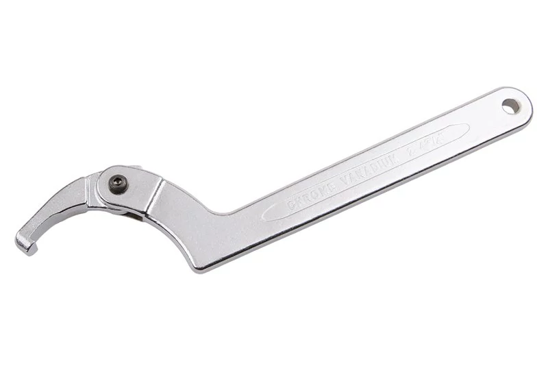 Állítható horogkulcs gallérokhoz, gyűrűkhöz és csapágyakhoz. Egypofa szorítócsappal ipari kivitelben. Használat közben győződjön meg arról, hogy a pofakampó megfelelően rögzítve van. Kivitel: matt króm felület, kovácsolt, króm-vanádium acél.