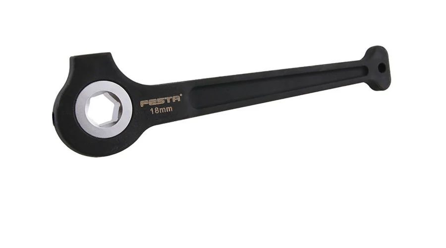 A FESTA 18 mm-es állványracsnis kulcsos racsnis csőállványokhoz. Hagyományos állványzati racsnis belső racsnival, amely mindössze 6 nagy fogat tartalmaz. Ennek köszönhetően a mechanizmus nagyon tartós, csakúgy, mint az egész racsnis, amelyet gyakran kalapácsként használnak. Súlya 0,840 kg.