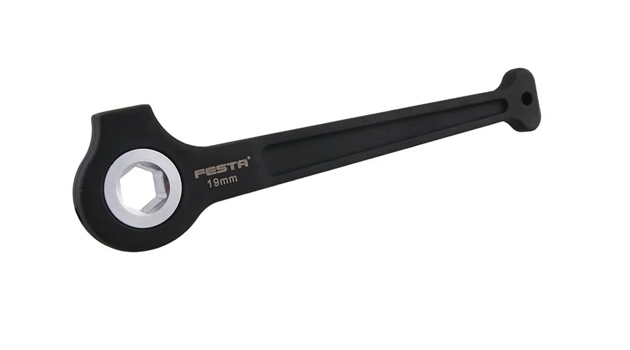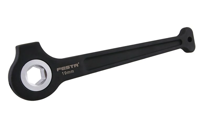 A FESTA 19 mm-es állványracsnis kulcsos racsnis csőállványokhoz. Hagyományos állványzati racsnis belső racsnival, amely mindössze 6 nagy fogat tartalmaz. Ennek köszönhetően a mechanizmus nagyon tartós, csakúgy, mint az egész racsnis, amelyet gyakran kalapácsként használnak. Súlya 0,840 kg.