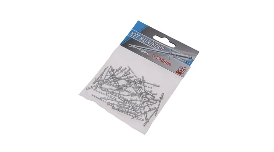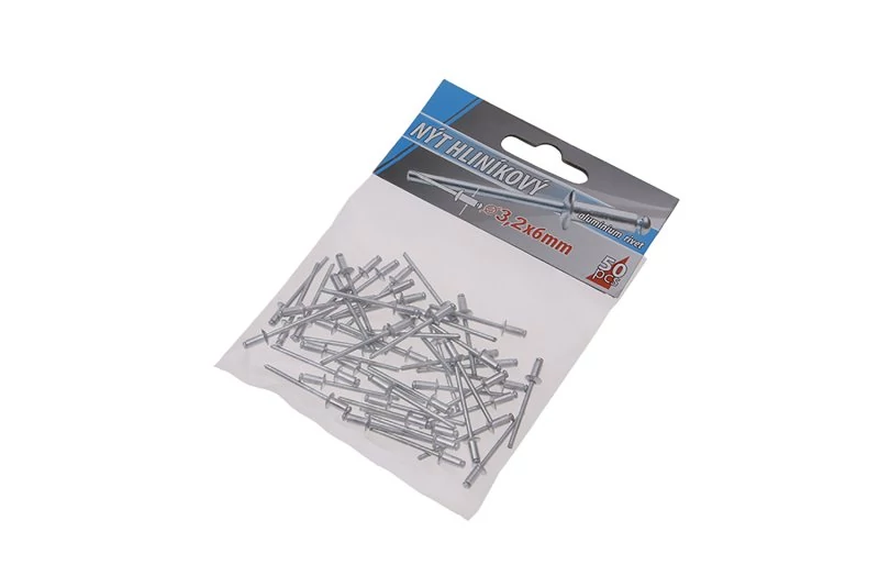 Klasszikus redőny-alumínium szegecsek, átmérő 3,2 mm, hossza 6 mm, 50 db-os kis kiszerelésben, kis fogyasztóknak megfelelő.