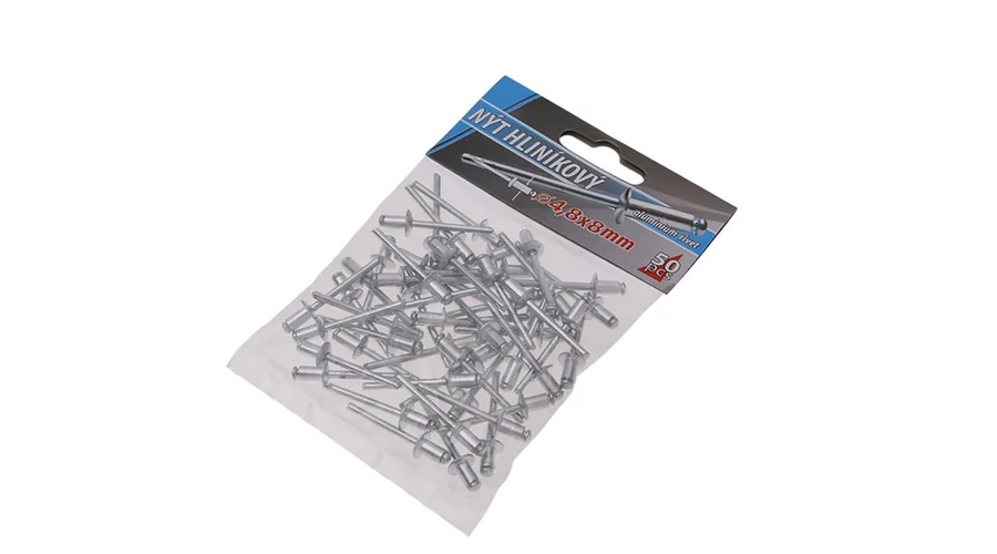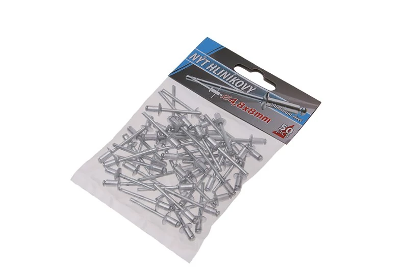 Klasszikus redőny alumínium szegecsek, átmérő 4,8 mm, hossza 8 mm, 50 db-os kis kiszerelésben, kisfogyasztóknak megfelelő.