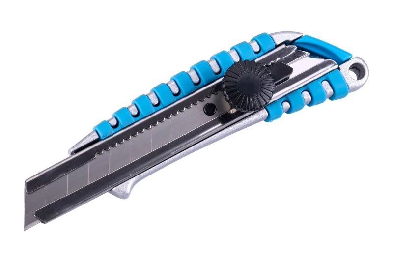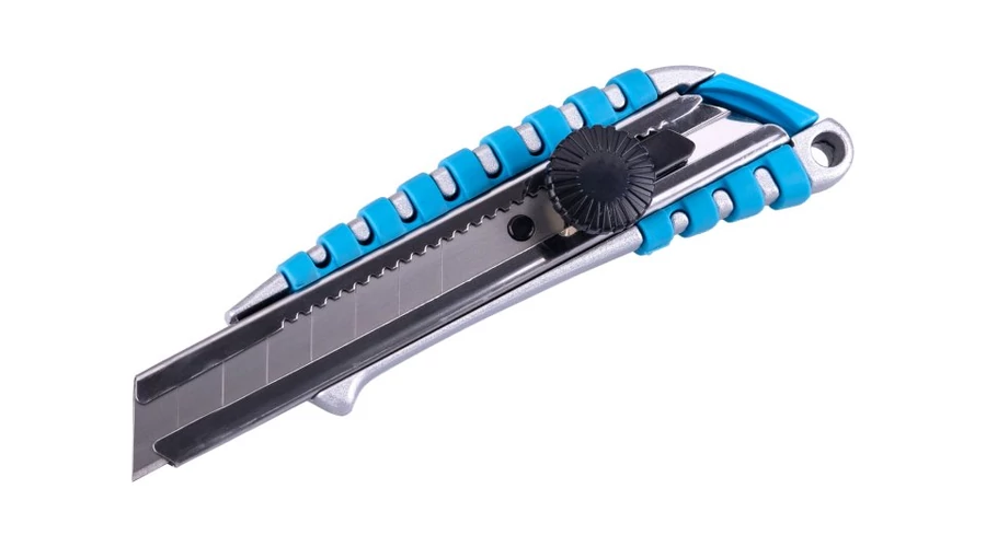 ALU törhető pengéjű kés, 18 mm-es ezüst-piros, csavaros rögzítéssel