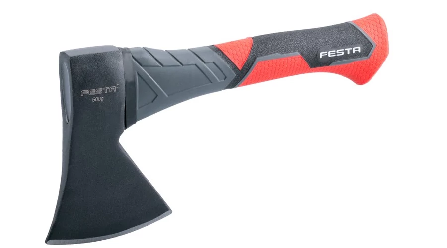 Üvegszálas FESTA tábori fejsze 500 g ütéselnyelő üvegszálas nyéllel. A fogantyú csúszásmentes fogantyúval rendelkezik, a végén hosszabbítóval, amely megakadályozza a csúszást. A gyakorlatban a fejszét főként fa aprítására vagy faragására, fák kivágására használják.