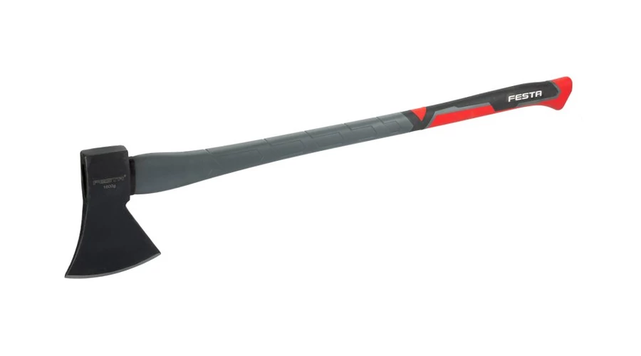 1600g ÜVEGSZÁLAS FESTA fejsze ütéselnyelő üvegszálas nyéllel. A fogantyú csúszásmentes fogantyúval rendelkezik, a végén hosszabbítóval, amely megakadályozza a csúszást. A gyakorlatban a fejszét főként fa aprítására vagy faragására, fák kivágására használják.