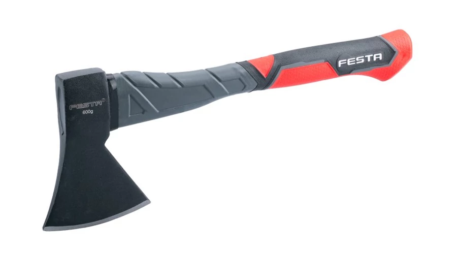 600g ÜVEGSZÁLAS FESTA fejsze ütéselnyelő üvegszálas nyéllel. A fogantyú csúszásmentes fogantyúval rendelkezik, a végén hosszabbítóval, amely megakadályozza a csúszást. A gyakorlatban a fejszét főként fa aprítására vagy faragására, fák kivágására használják.