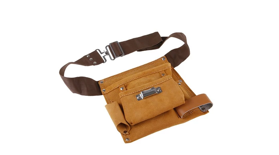 Szerszámszíj, 6 zseb, bőr/nylon, felhasználás: szerszámok és tartozékok tárolására, megkönnyíti a kezelést és a munkát - könnyű elrakni a szerszámokat és visszafogni, tárolni az anyagot - szögek, csavarok..., kényelmes széles állítható öv.