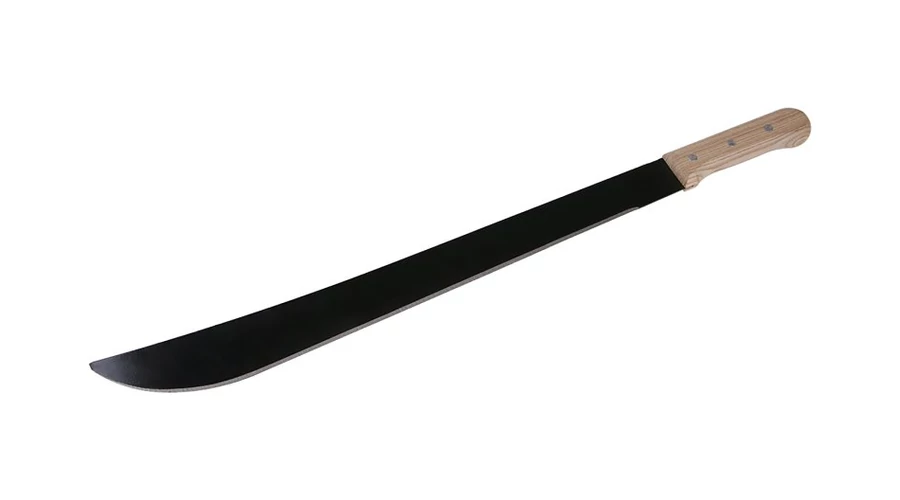 Kiváló minőségű acélból készült machete, fa nyéllel, tömör nylon tokkal, hossza 71 cm.