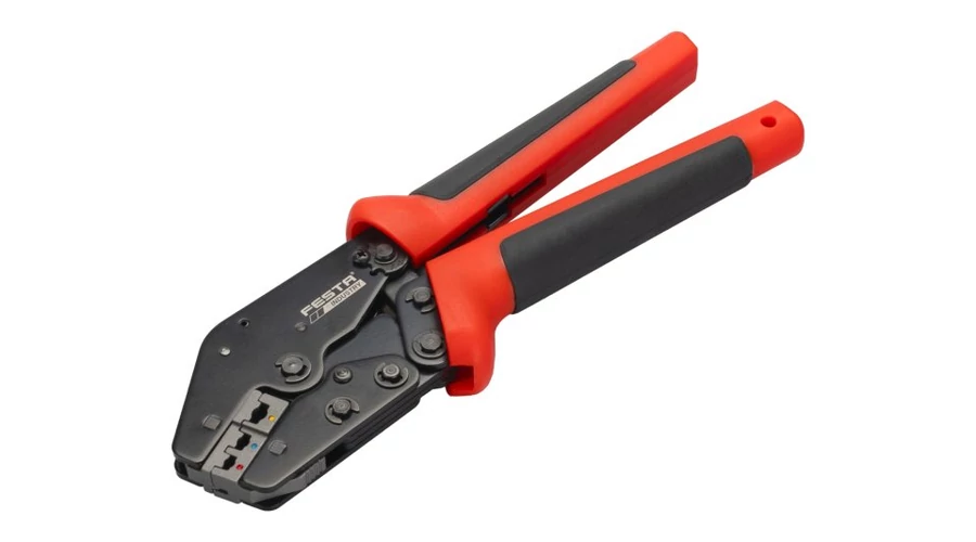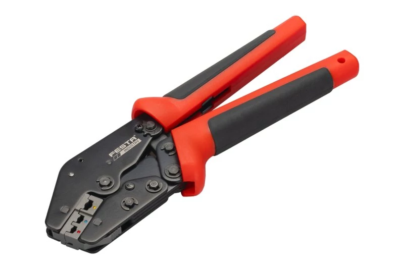 - profesionální lisovací / krimpovací kleště s vyměnitelnými čelistmi na izolované a neizolované koncovky, dutinky na vodiče