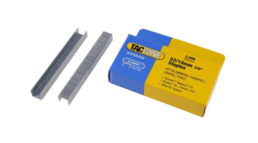Minőségi csatok 53-as típus, szélessége 11,3 mm, vastagsága 0,7 mm és hossza 10 mm. Alkalmas Tacwise, Rapesco 53, Stanley TR, Arrow JT21 és más típusú 53 tűzőgépekhez.