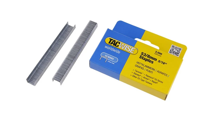 Minőségi csatok 53-as típus, szélessége 11,3 mm, vastagsága 0,7 mm és hossza 8 mm. Alkalmas Tacwise, Rapesco 53, Stanley TR, Arrow JT21 és más típusú 53 tűzőgépekhez.