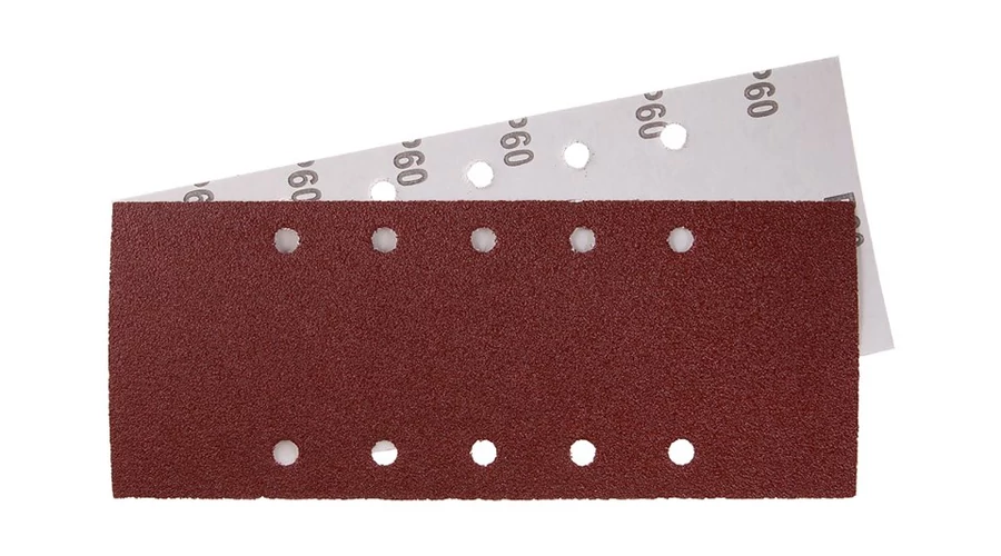 Csiszolópapír - 5 darabos készlet, szemcseméret: 60, típus: 10 lyuk, szemcse típusa: alumínium-oxid, kötőanyag: műgyanta, hátlap anyaga: rugalmas papír C (110-135g/m2), méretek: a terméknévben feltüntetve , csomagolás: buborékfólia euro lyukkal ellátott papírkártyával.