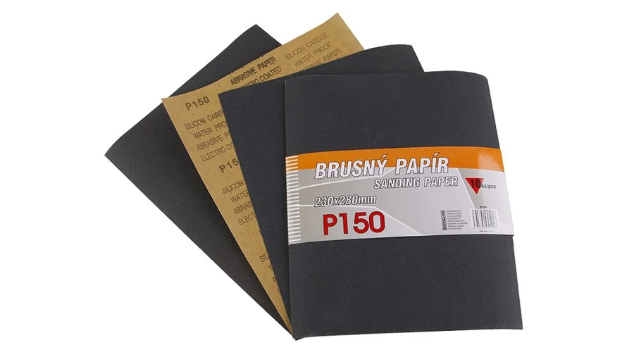 Vízálló csiszolópapír - 10 darabos készlet, szemcseméret: 150, szemcsetípus: szilícium-karbid, kötőanyag: vízálló műgyanta, hátlap anyaga: rugalmas vízálló papír C (110-135g/m2), méretek: a termék megnevezésében feltüntetve, csomagolás: 10 darabok - papírhüvely.