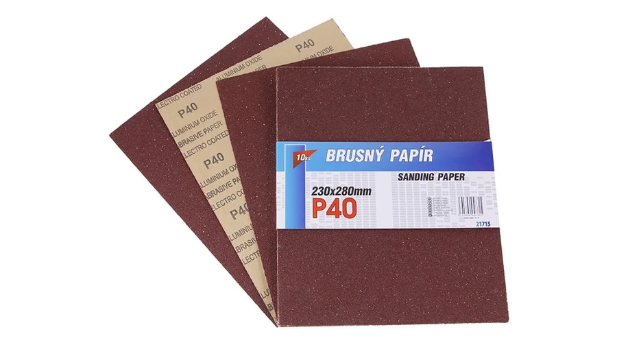 Csiszolópapír - 10 db-os készlet, szemcse: 40 db, szemcse típusa: alumínium-oxid, kötőanyag: műgyanta, hátlap anyaga: rugalmas papír C (110-135g/m2), méretek: a termék megnevezésében feltüntetve, kiszerelés: 10 db - papír hüvely.