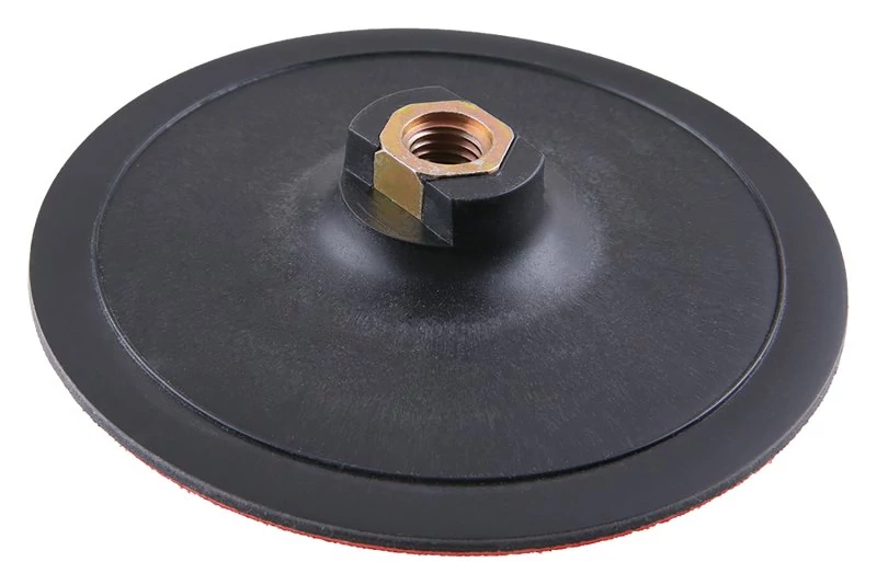 Csiszolópapír meghajtó, rugalmas tartólemez, nagyon jól illeszkedik a talajhoz, menet M 14, felhasználás: 150 mm átmérőjű csiszolódarabok tartásához, rögzítés módja: tépőzár, csomagolás: buborékfólia Euro lyukkal.