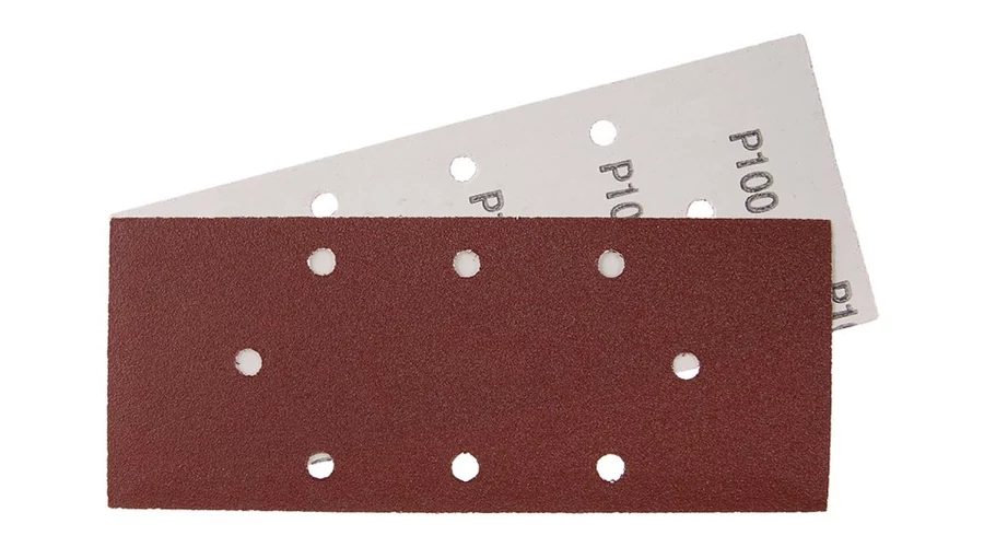Csiszolópapír - 5 darabos készlet, szemcseméret: 100, típus: 8 lyuk - Black&Decker, szemcse típusa: alumínium-oxid, kötőanyag: műgyanta, hátlap anyaga: rugalmas papír C (110-135g/m2), méretek: feltüntetve termék megnevezése, csomagolása : buborékfólia euro lyukkal ellátott papírkártyával.