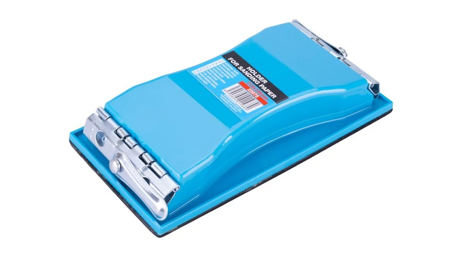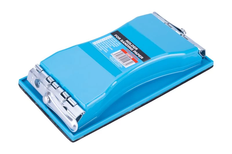 Csiszolópapír tartó, anyaga: műanyag - fém - gumi, ergonomikus forma a könnyű fogásért és munkavégzésért, a kiváló minőségű rugós zárak könnyű cserét és papír, tányérok vagy csiszolórácsok megfelelő megtartását teszik lehetővé, a gumiréteg biztosítja a jó alkalmazkodást a csiszolt felülethez, használat : csiszolópapír tartó, kendők, csiszoló rácsok,..., méretek: a termék megnevezésében szerepel.