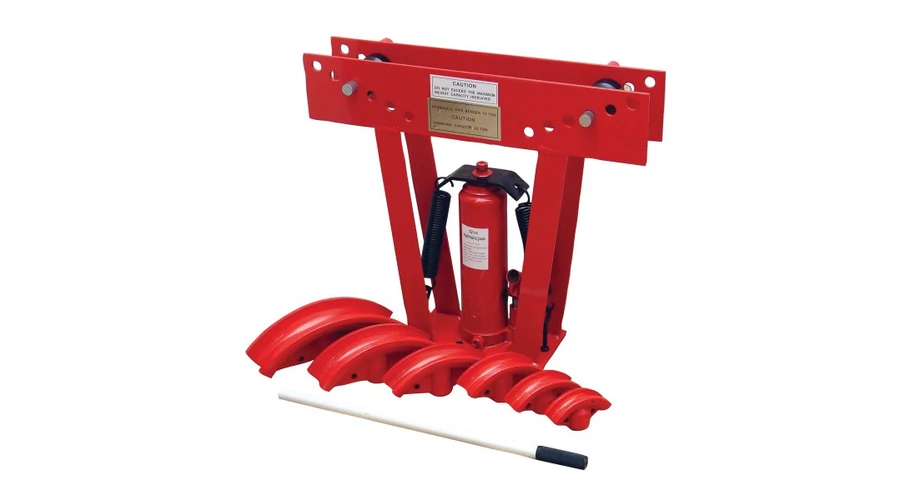 Hidraulikus csőhajlító, hordozható. Gép acél, alumínium, réz, sárgaréz és egyéb fémcsövek hajlításához. Alakító erő 12 t Hajlítólábak méretei 12.71925.431.738.1 50.8 mm.