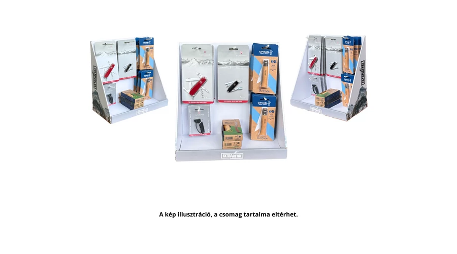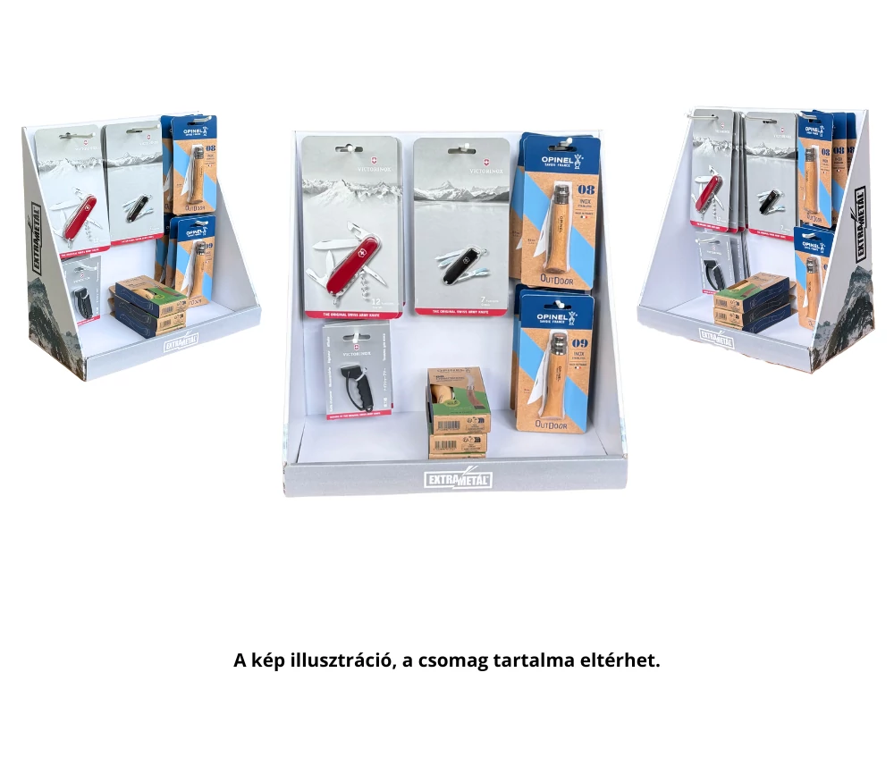Az Extrametál Kis Bliszterfal Csomag egy praktikus és gazdaságos választás, amely a legkeresettebb Victorinox és Opinel eszközöket tartalmazza.