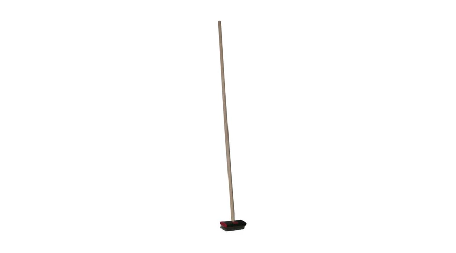 Nyeles acélkefe, acélhuzal - horganyzott, műanyag test gumi bevonattal, felhasználás: vasfémek, például acél tisztítására, érdesítésre és régi bevonatok durva eltávolítására. Mérete: 6 x 19 mm.