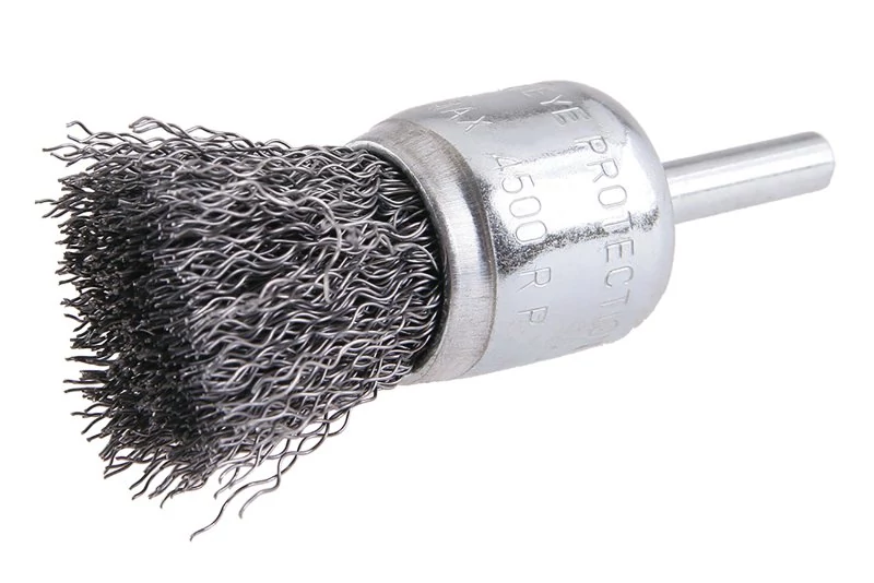 Forgókefe - hullámos, FESTA kefék garantálják a kiváló anyagokat és megmunkálást, huzal 0,3 mm átmérő 25 mm, szár 6 x 20 mm, horganyzott kefetest, huzalok száma: 150, huzalhossz: 20 mm, megengedett fordulatszám: 4500 1 /perc, felhasználás: könnyű csiszolási munka és tisztítás nehezen hozzáférhető helyeken, csomagolás: eurólyukkal ellátott buborékfólia.