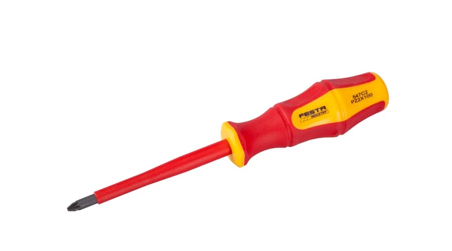 A FESTA csavarhúzó elektro VDE 1000 V, EN IEC 60900: 2018 tanúsítvánnyal rendelkezik, a fém tengely kiváló minőségű króm-vanádium acélból készült, az edzett hegy mágneses, az ergonomikusan kialakított nyélen a polipropilén és a gumi kombinációja garantálja a kiváló anti- csúszási tulajdonságok és jó kenőanyagokkal és vegyszerekkel szembeni ellenállás.