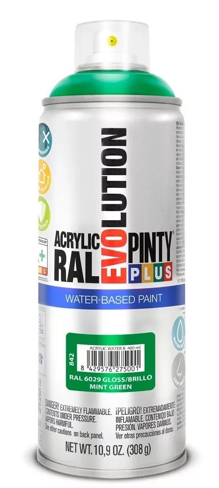 A PintyPlus Evolution Water-based, vizes bázisú akril festék spray egy speciális festék azok számára, akinek fontos a környezet védelme. Univerzálisan használható, RAL színekben elérhető. Mivel vizes bázisú, ezért bármilyen célra, bármilyen felületen használható. Szinte teljesen szagtalan, de rendkívül jól tapad és ellenálló, egységes felületet képez. DIY (csináld magad) és professzionális projektek során is tökéletesen használható.