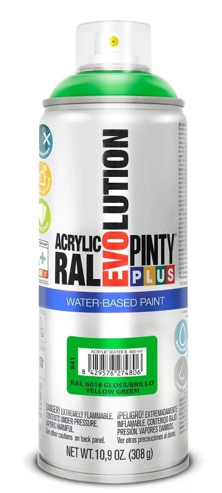 A PintyPlus Evolution Water-based, vizes bázisú akril festék spray egy speciális festék azok számára, akinek fontos a környezet védelme. Univerzálisan használható, RAL színekben elérhető. Mivel vizes bázisú, ezért bármilyen célra, bármilyen felületen használható. Szinte teljesen szagtalan, de rendkívül jól tapad és ellenálló, egységes felületet képez. DIY (csináld magad) és professzionális projektek során is tökéletesen használható.