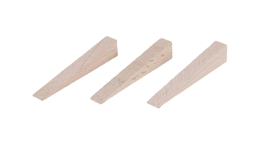 Fa ékek, méret: 55 x 8 x 0-10 mm, kemény bükkfából, mennyiség: 250 db, felhasználás: azonos szélesség és illesztési vonal biztosítására burkolásnál és csempézésnél csomagolás: eurolyukkal ellátott buborékfólia.