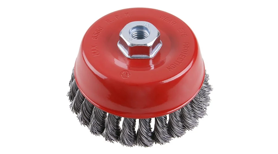 Forgókefe - csésze, változat: COPY - szabadalmaztatott huzal 0,3 mm = a másolatok extrém terhelés esetén sem bomlanak ki, a FESTA kefék garantálják a kiváló minőségű anyagokat és feldolgozást, átmérő 125 mm, rögzítés M14*2 mm, huzalok száma 720, huzalhossz 17 mm, maximális fordulatszám percenként. 12500, felhasználása: lakatos és fémmegmunkálási munkákhoz, rozsda, festék eltávolításához, hegesztési varratok tisztításához.