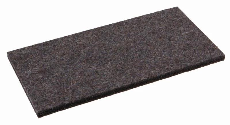A 280 x 140 x 10 mm-es cserefekete filc finomvakolat összehasonlításhoz, nagyobb vakolatszemcsékhez használható.