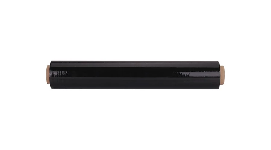 Fekete rögzítő zsugorfólia áruk csomagolásához. szélessége 50cm. Orsó 200 m. Erő 23 mi.