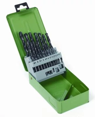 Fém csigafuró klt. 19 db. 1-10 mm. fém dobozban