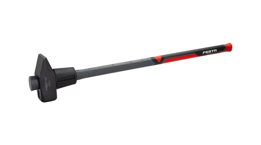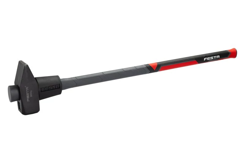 3000g ÜVEGSZÁLAS FESTA kalapács ütéselnyelő üvegszálas nyéllel. A fogantyú csúszásmentes fogantyúval rendelkezik, a végén hosszabbítóval, amely megakadályozza a csúszást. A kovácsolt fej kiváló minőségű szénacélból készül.