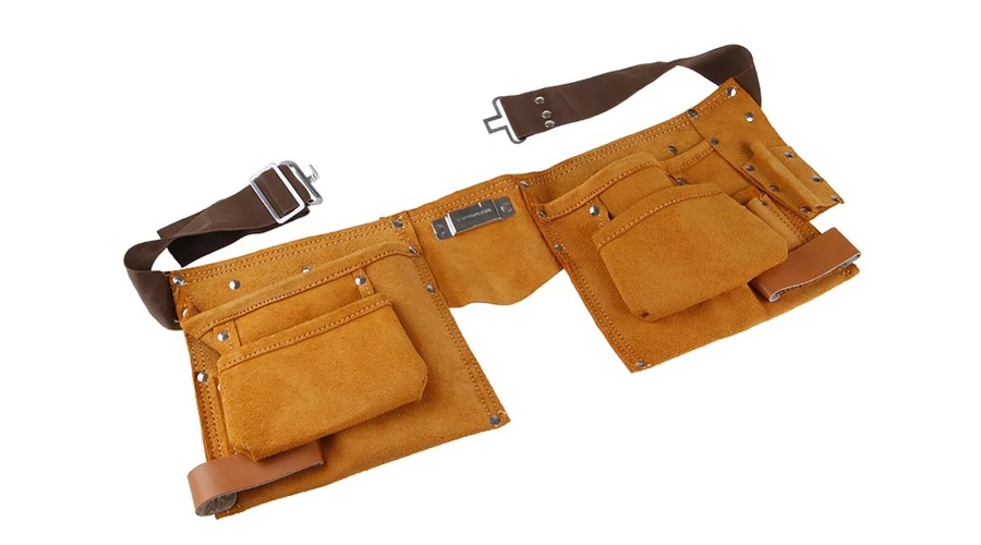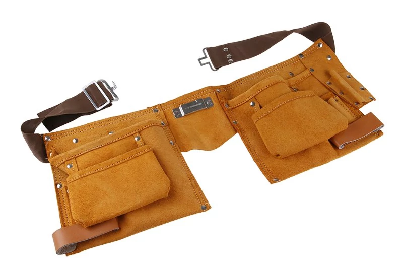 Szerszámszíj, PROFI - kiváló minőségű vastag bőr és megmunkálás - varratok, 11 zseb, bőr / nylon, felhasználás: szerszámok és tartozékok tárolására, megkönnyíti a kezelést és a munkát - a szerszámok egyszerű tárolása és visszafogása, anyag tárolása - szögek, csavarok..., kényelmes széles állítható öv.
