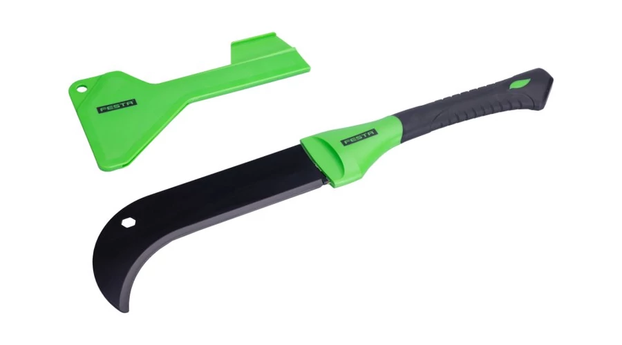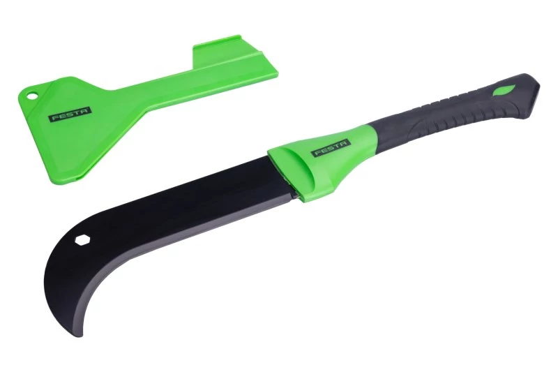 A machete ideális kisebb ágak, fák vagy rönkök eltávolítására, fakéreg lefejtésére és ágak levágására a törzsről, erdészetben és kertészetben. Túrázáshoz, horgászathoz, kempingezéshez stb. is használható. A csúszásmentes gumi fogantyú biztonságos fogást tesz lehetővé, elnyeli a használat okozta ütéseket, csökkenti a fáradtságot és lehetővé teszi a maximális ütési energia átvitelét a szerszám pengéjére. Edzett acélból, köszörült éllel.