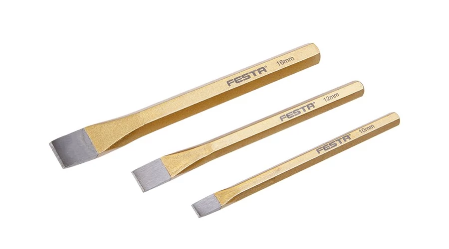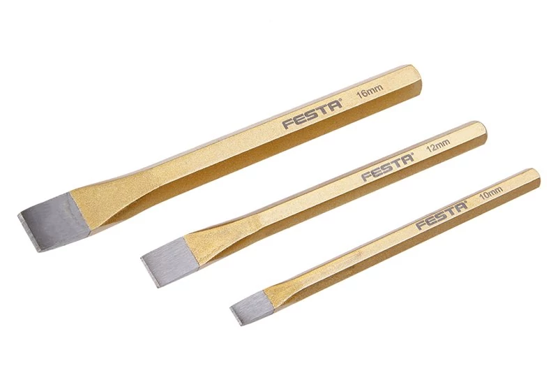 FESTA vésőkészlet króm-vanádium acélból. A készlet 3 db vésőt tartalmaz: 12x152, 10x142, 16x172.