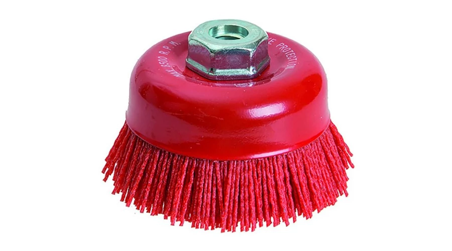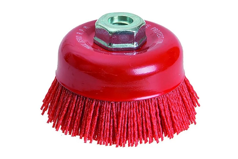 Pohárkefe nylon hullámos szálakkal, M14-es rögzítéssel, tállal, alkalmas festékeltávolításra, polírozásra és famegmunkálásra...
