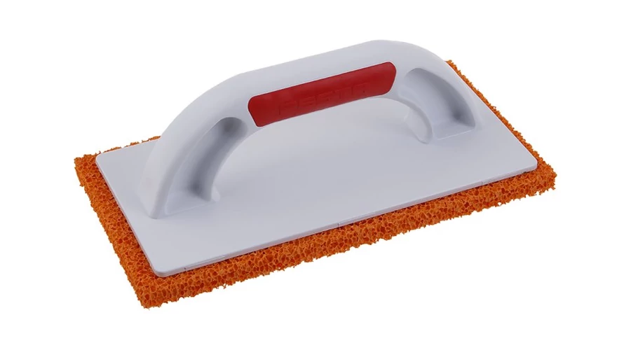 FESTA simító szivaccsal, mérete: 250 x 130 x 18 mm, alapja kiváló minőségű műanyagból, ergonomikus nyéllel, felhasználás: fugázóanyag mosására, finomvakolat tisztítására, stukkó vakolat simítására.