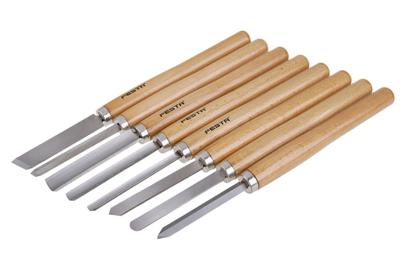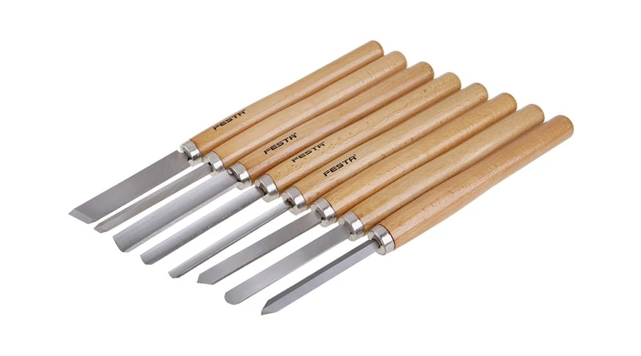 Faragó vésők általános faragáshoz. Anyaga CrV, fa fogantyú. 8 db-os készletben - fa kazettás. Hossza 365/125 mm.