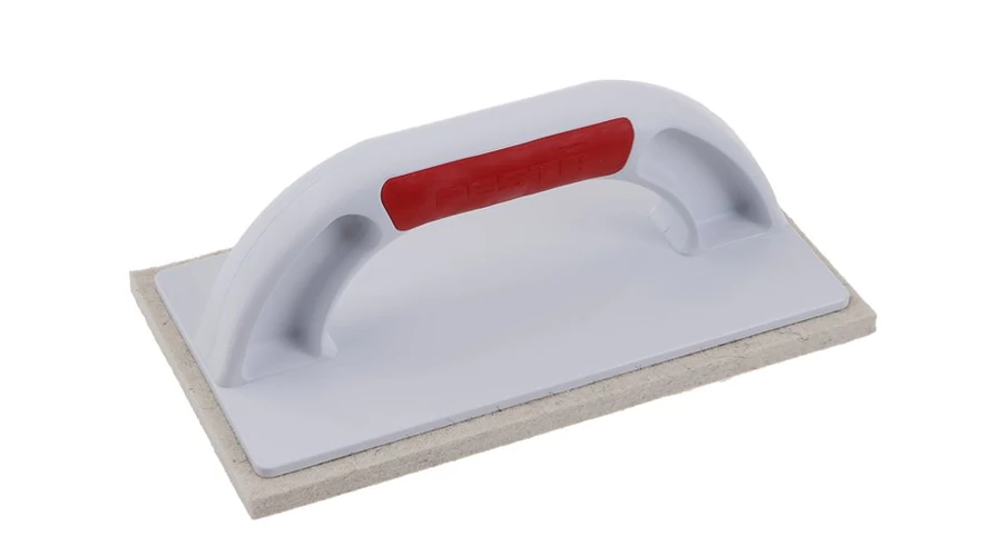 FESTA simító fehér filccel, jó minőségű műanyag talp ergonomikus nyéllel, méret: 220 x 130 x 10 mm, felhasználás: finomvakolat összehasonlításához, finomabb vakolatszemcsékhez, felületösszetétel 95% gyapjú, sűrűség - 0,25 g/cm3 (+- 10%)
