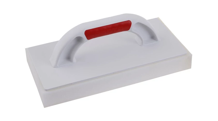 FESTA simító rácsozott puha habbal, alapja kiváló minőségű műanyagból ergonomikus nyéllel, méret: 280 x 140 x 30 mm, használt: laza homok eltávolítására, a rácsozásnak köszönhetően jobban megfogja a stukkó durva részeit, csempék utáni mosáshoz illesztés.