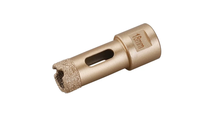 - javasolt munkamenet - csavarja fel a koronát közvetlenül a szög menetére köszörűfej, húzza meg erősen, 45°-os szögben körbe kell indítani a kívánt furatot, a korona és a daráló sebessége azonnal rögzíti a rögzítést a kívánt helyen, lassan egyenesítse ki a lekerekítés irányát függőleges helyzetbe, egyenletes nyomással, a kisebb, 6-14 mm átmérőjű kemény burkolatok fúrására szolgál. HŰTÉS az egyes fúrások között – csak merítse egy pohár vízbe, vagy forgás közben hagyja kihűlni a levegőn!