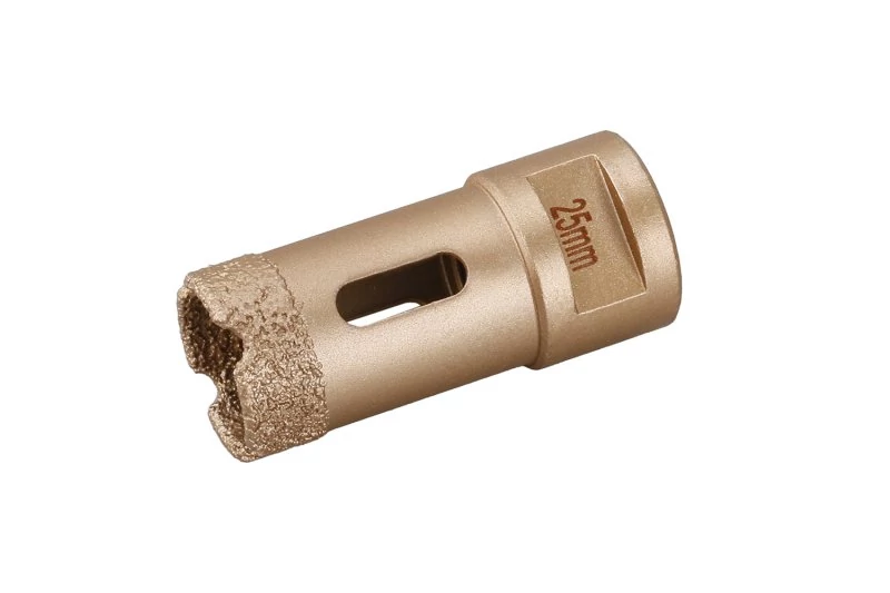 - javasolt munkamenet - csavarja fel a koronát közvetlenül a szög menetére köszörűfej, húzza meg erősen, 45°-os szögben körbe kell indítani a kívánt furatot, a korona és a daráló sebessége azonnal rögzíti a rögzítést a kívánt helyen, lassan egyenesítse ki a lekerekítés irányát függőleges helyzetbe, egyenletes nyomással, kisebb, 6-14 mm-es átmérőt használnak kemény járdákba való fúráshoz, az egyes furatok között, HŰTÉS - csak merítse egy pohárba vízben vagy fordulat közben hagyd kihűlni a levegőn!