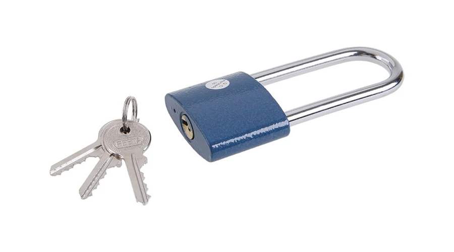 Acél zártest, sárgaréz betét, 3 kulcs, Megerősített, edzett acél kiterjesztett ív a jobb vágásállóság érdekében.