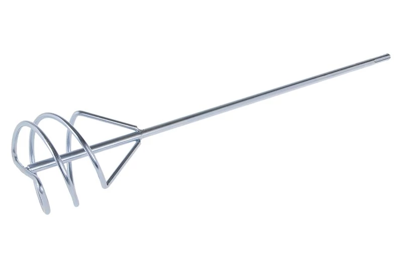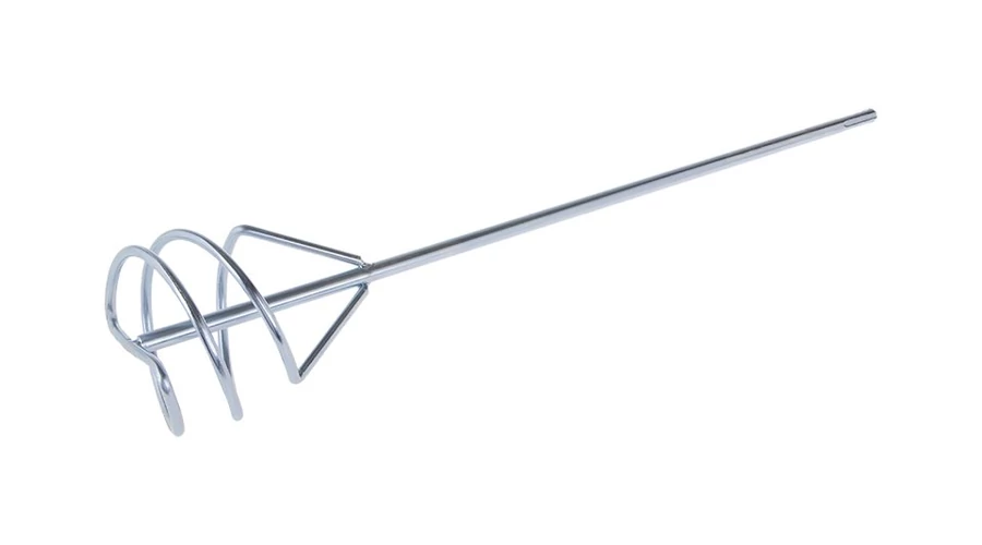 Keverőspirál - drót (seprű), horganyzott, 100 x 500 mm - SDS +, felhasználás: csemperagasztók, fugázó anyagok, ragasztóhabarcsok, készvakolatok, esztrichek, esztrichek, kiegyenlítő anyagok alapos keverésére.