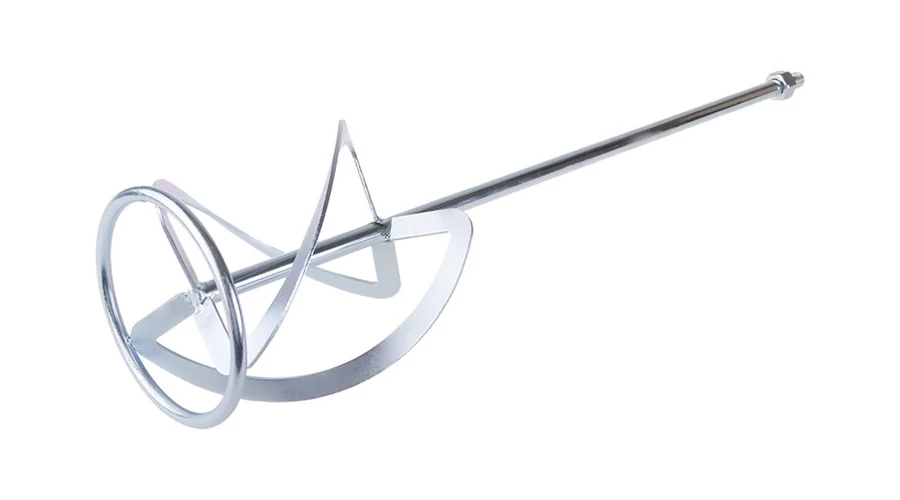 Keverő - balos (felülről végzett keverés lefelé nyomja a keveréket) - habverő, horganyzott, méret: 140 x 600 mm - M14, felhasználás: nehéz, nagy viszkozitású anyagokhoz. Habarcsok, betonok, cement- és mészvakolatok, kötőanyagok, esztrichek, epoxigyanták, bitumenes rétegek.